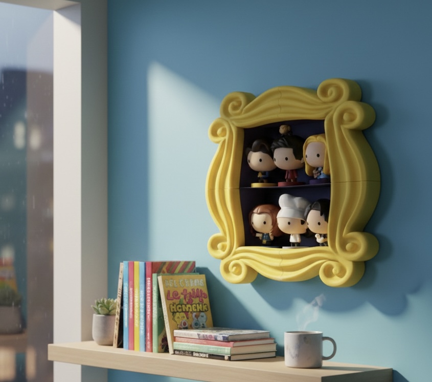 Expositor inspirado na famosa moldura da porta do apartamento da série Friends. Ideal para organizar e valorizar as figuras da coleção McDonald’s com um toque decorativo icónico e reconhecível. Impresso em PLA sustentável.