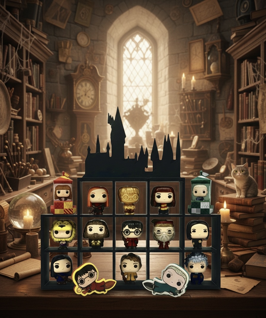 Expositor temático inspirado no universo do quadribol de Harry Potter, desenvolvido para organizar e valorizar figuras Kinder Joy da coleção. Ideal para fãs que desejam destacar as miniaturas com uma apresentação temática forte, tornando a coleção um elemento decorativo em estantes, prateleiras ou vitrines. Impresso em PLA sustentável.