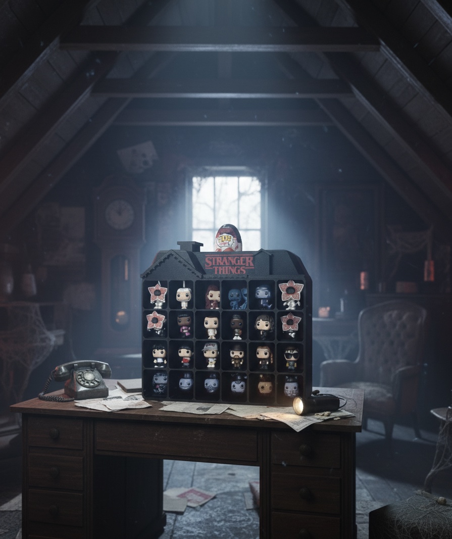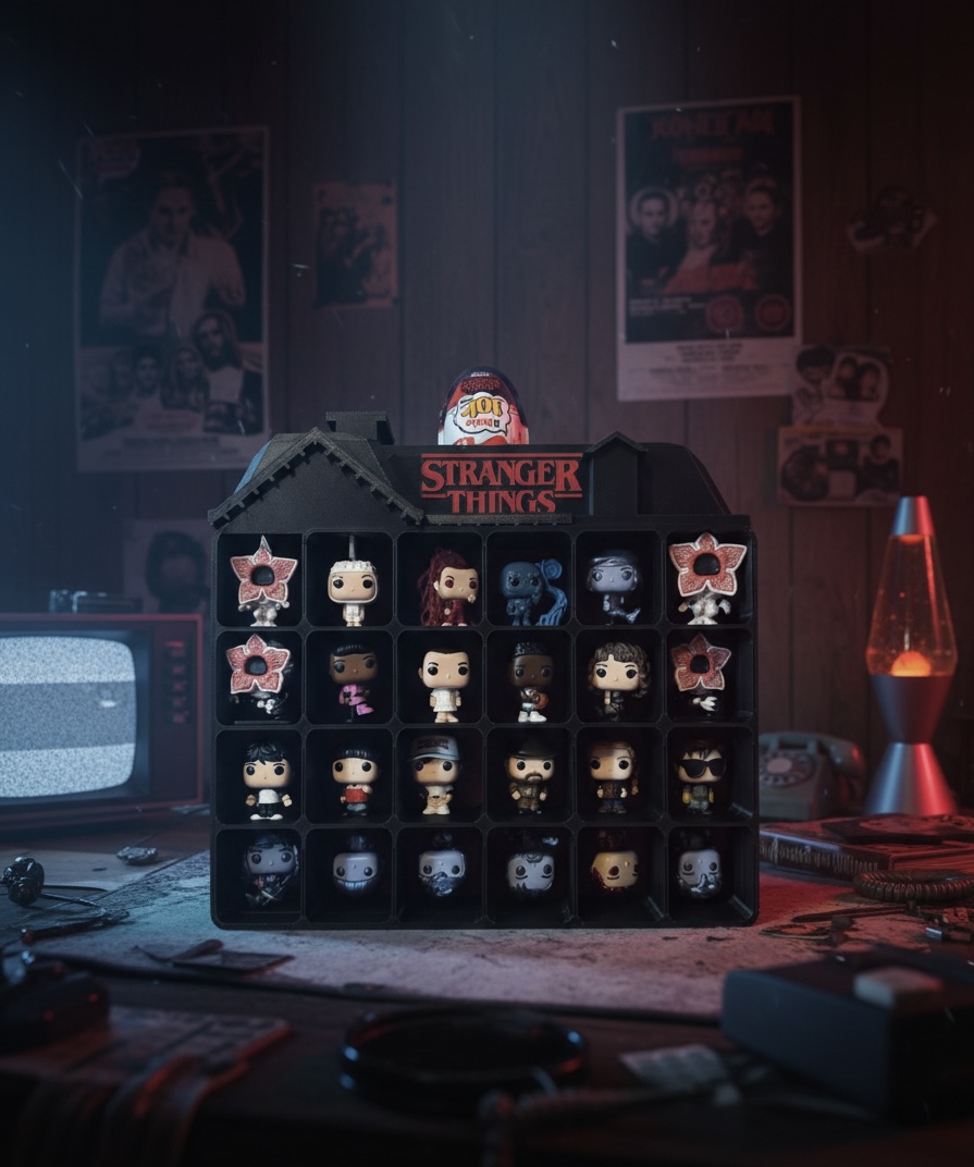 Estrutura decorativa em formato de casa, pensada para expor figuras Kinder Joy da coleção Stranger Things de forma criativa e imersiva. Além de organizar as miniaturas, cria um cenário temático que valoriza a coleção e torna o espaço mais envolvente, ideal para quartos, estantes e áreas geek. Impresso em PLA sustentável.