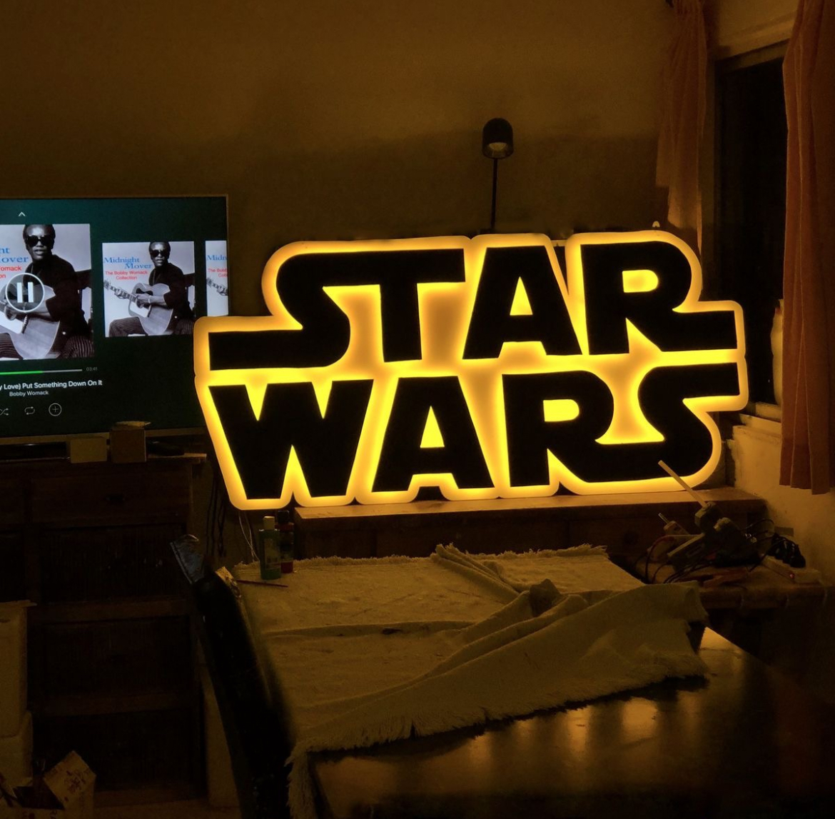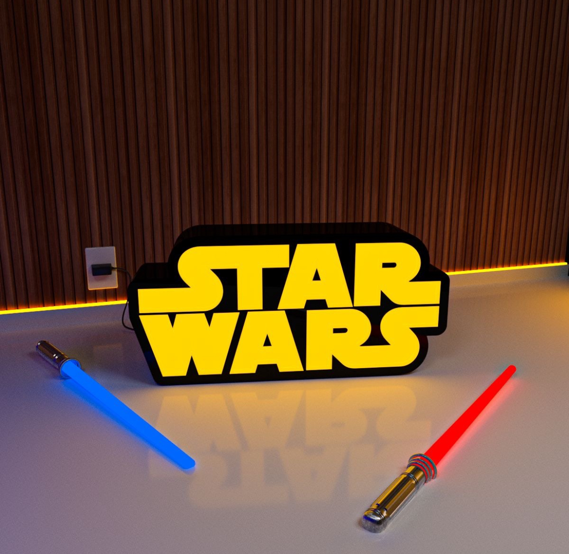 Lightbox decorativo inspirado no universo Star Wars, ideal para criar iluminação ambiente e destacar a decoração de quartos, salas ou espaços geek. Combina luz suave com um design temático marcante, valorizando o ambiente de forma criativa. Impresso em PLA sustentável.