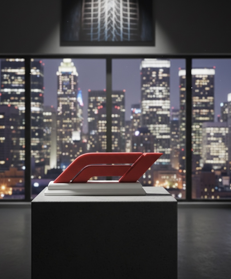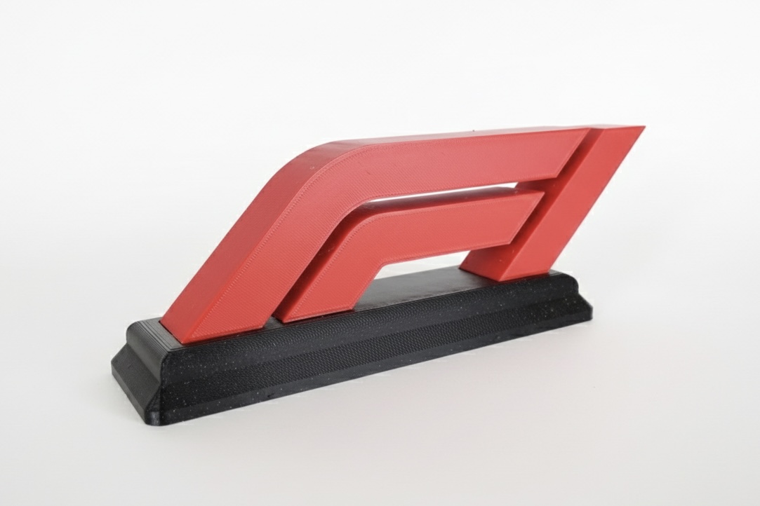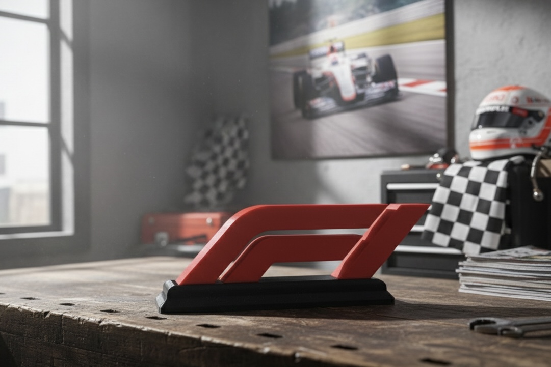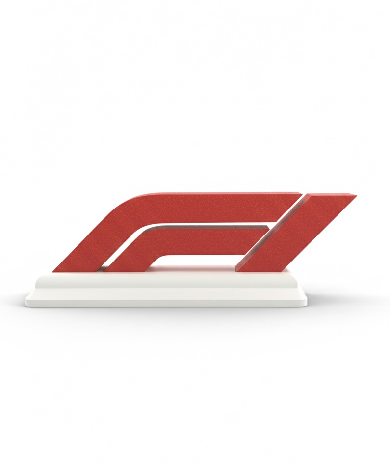 Logótipo decorativo inspirado na Fórmula 1, ideal para fãs do automobilismo que desejam acrescentar identidade e estilo ao ambiente. Perfeito para escritórios, salas, estantes ou espaços dedicados a coleções e decoração temática. Impresso em PLA sustentável.