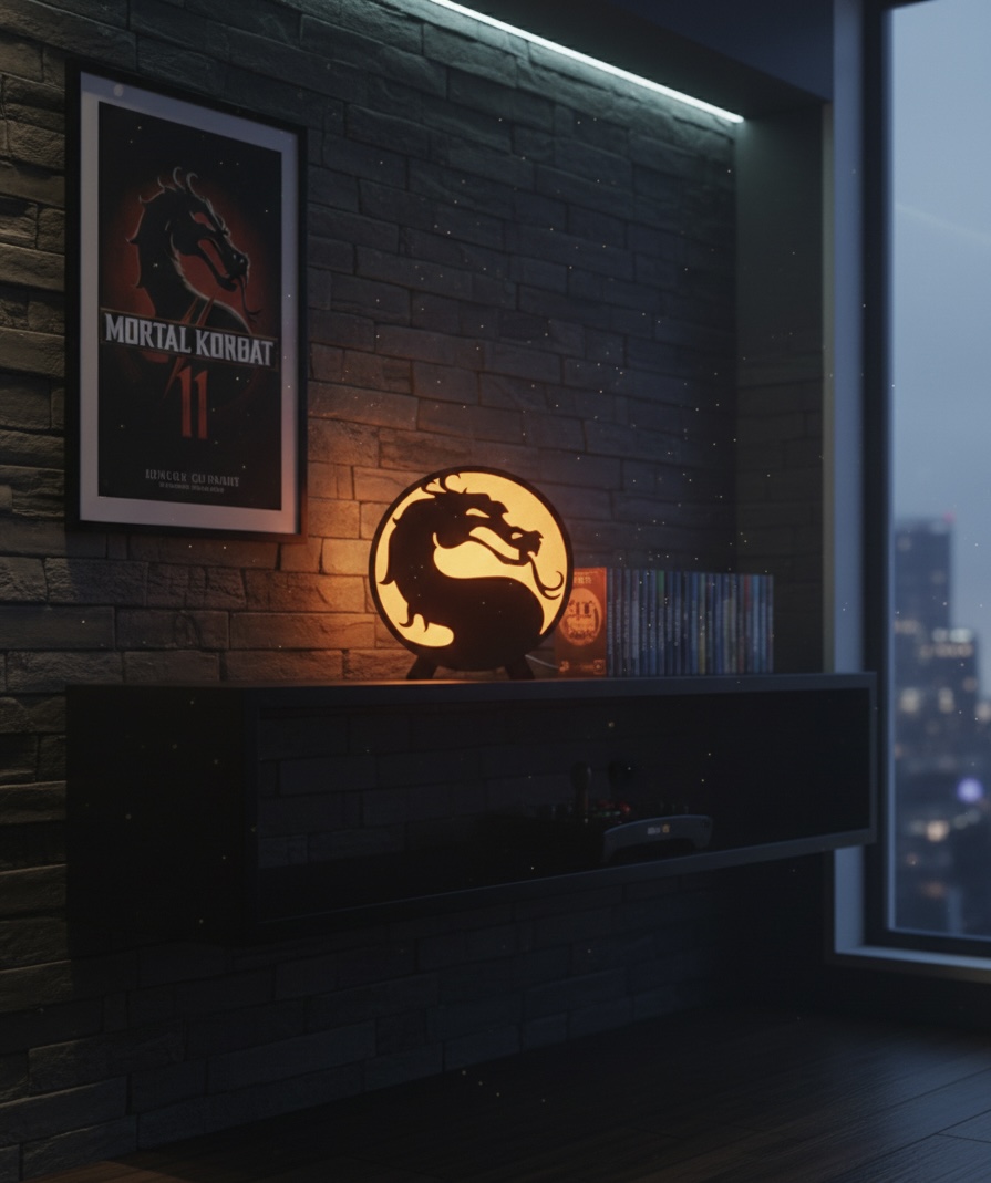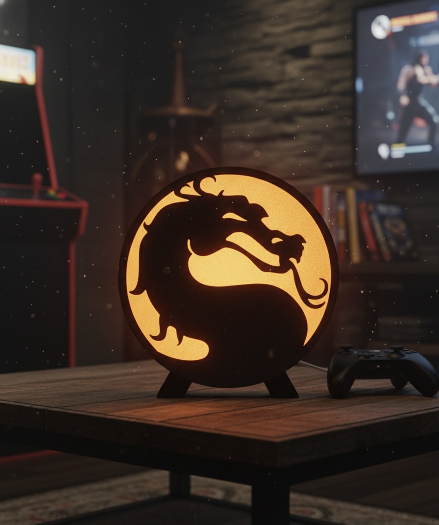 Luminária inspirada no universo Mortal Kombat, ideal para fãs de jogos que procuram uma iluminação temática e cheia de personalidade. Perfeita para quartos gamers, escritórios ou espaços geeks, cria um ambiente marcante e envolvente. Impresso em PLA sustentável.