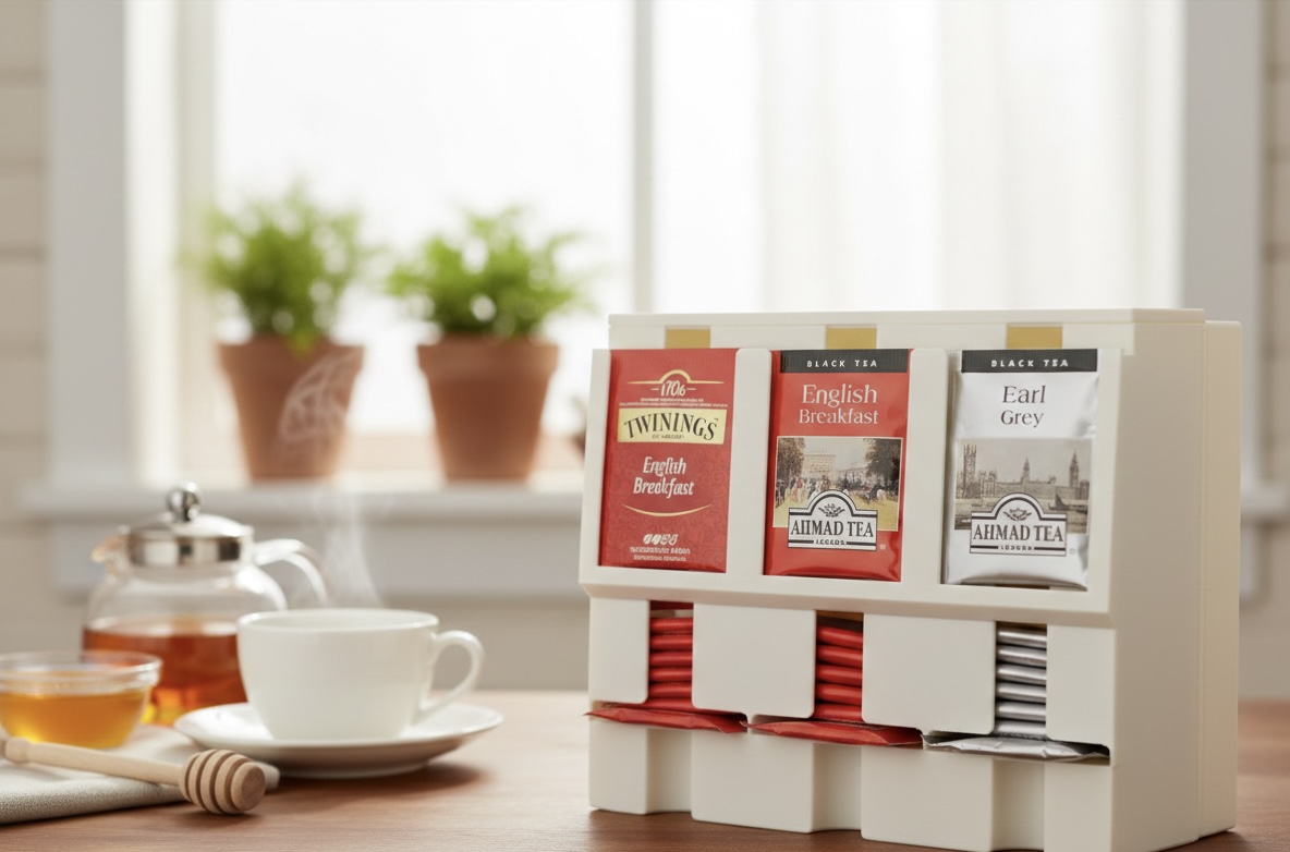Organizador funcional pensado para quem aprecia praticidade e organização na cozinha ou no espaço do café. Ideal para armazenar e dispensar sachês de chá de forma prática, mantendo tudo acessível e visualmente organizado. Impresso em PLA sustentável.