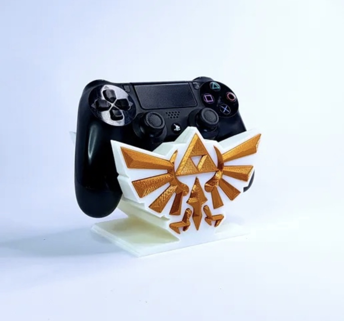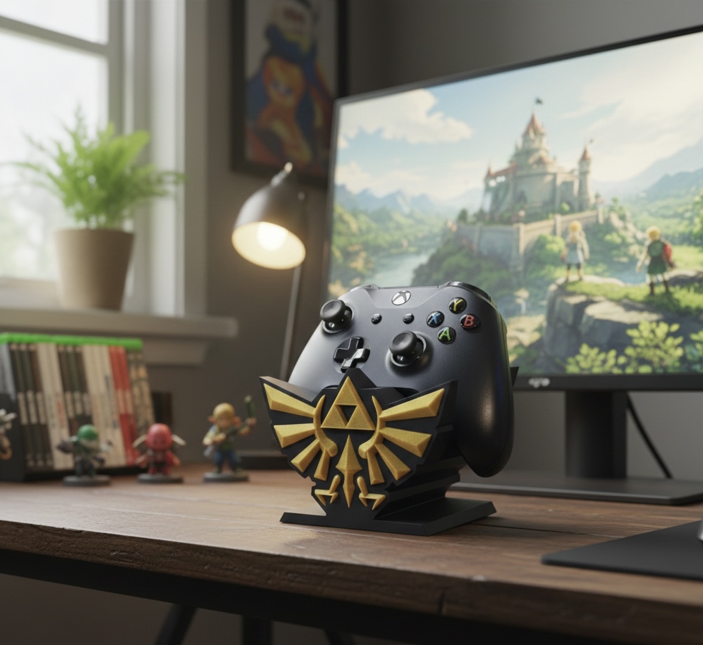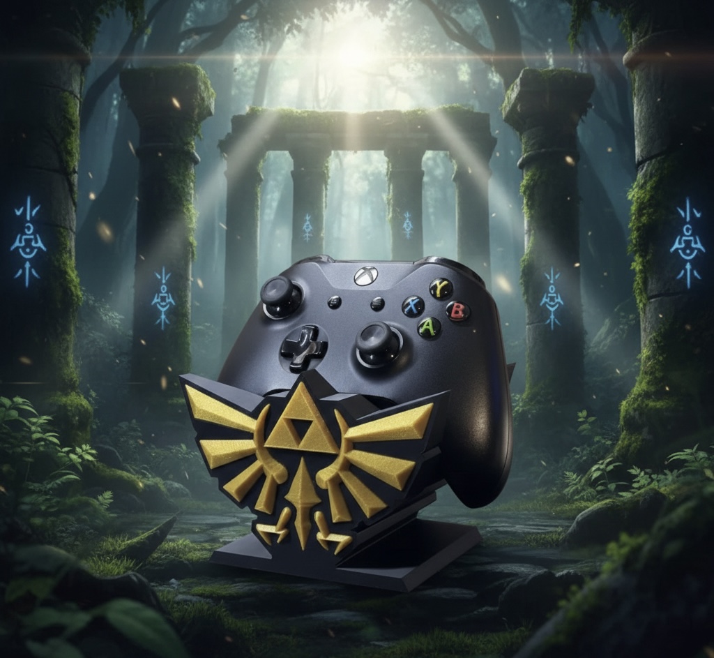 Suporte decorativo inspirado no universo Zelda, desenvolvido para organizar e apoiar joysticks de forma prática e segura. Ideal para setups gamer que valorizam estética temática, mantendo o comando sempre acessível e bem posicionado. Impresso em PLA sustentável.