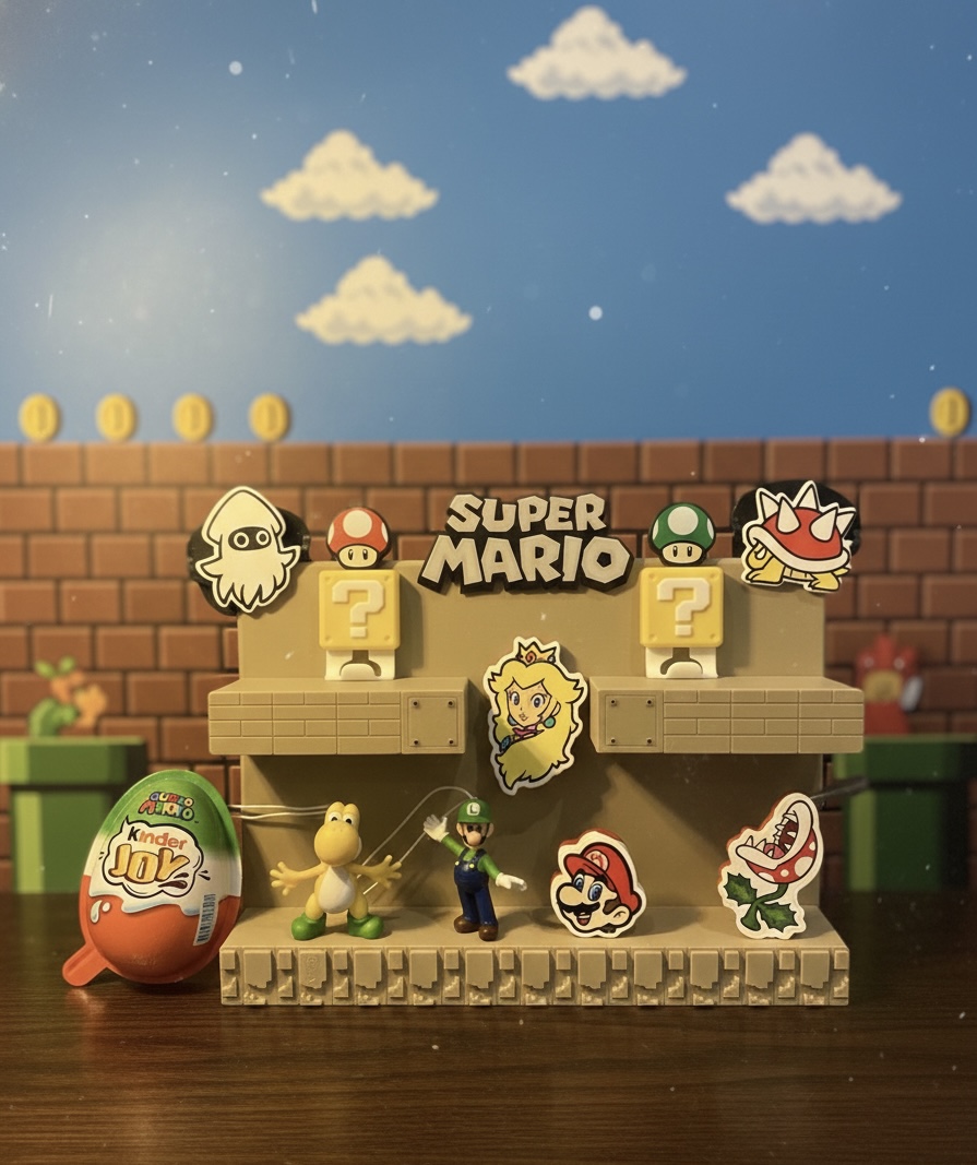 Expositor desenvolvido para organizar e valorizar figuras Kinder Joy da coleção Mario Bros. Proporciona uma apresentação divertida e organizada das miniaturas, ideal para colecionadores que desejam expor a coleção de forma prática e decorativa. Impresso em PLA sustentável.