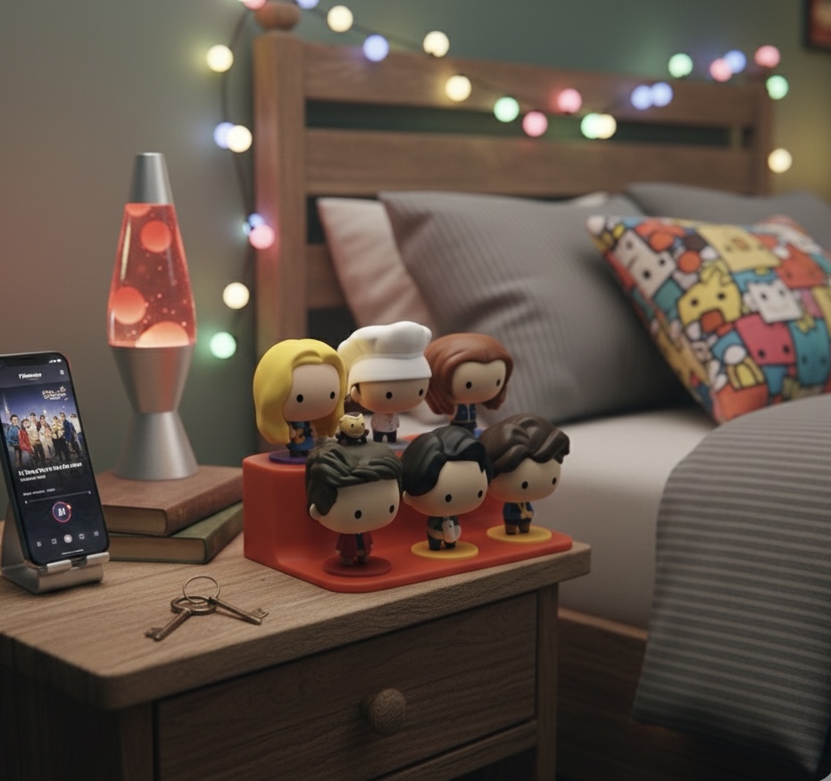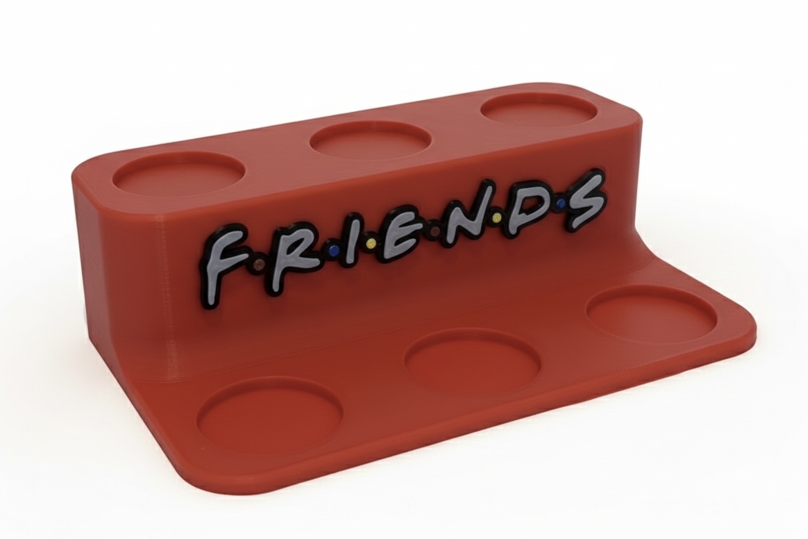 Expositor desenvolvido especialmente para a coleção Friends do McDonald’s. Ideal para organizar e destacar as figuras em formato de palco, criando uma apresentação temática e organizada em estantes ou vitrines. Impresso em PLA sustentável.