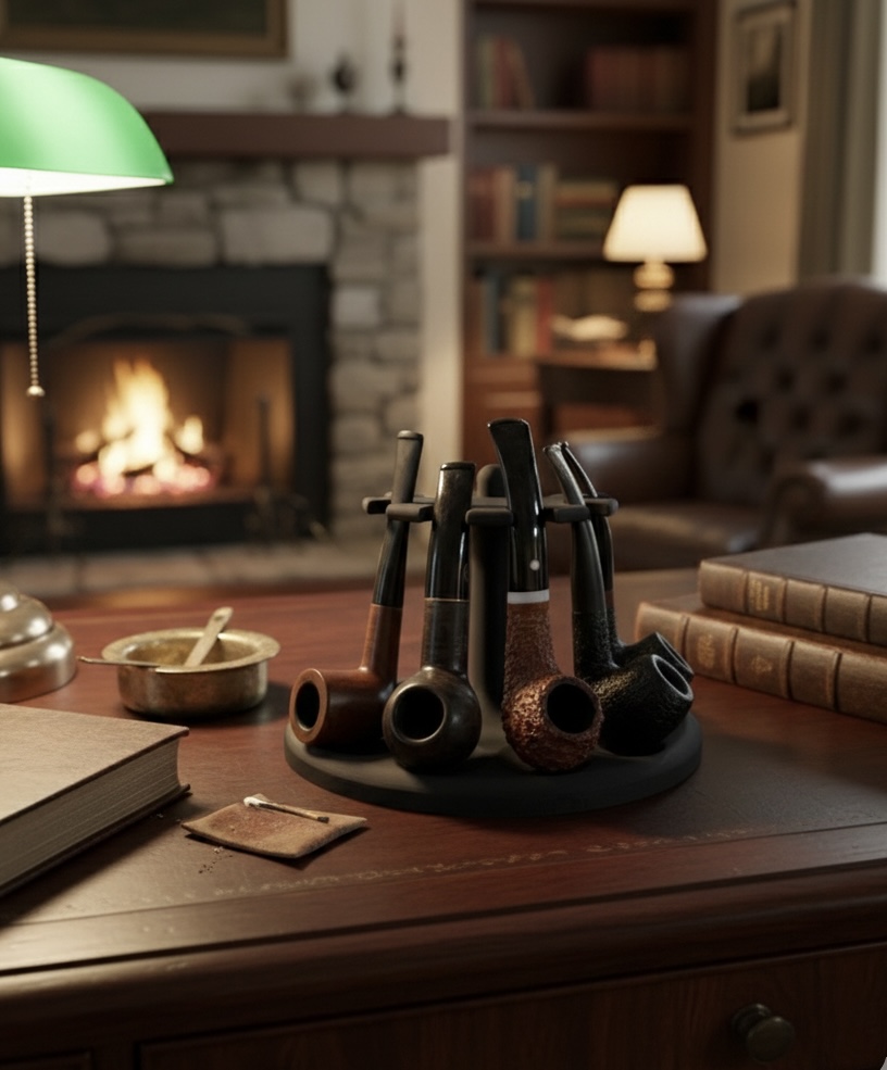Suporte funcional desenvolvido para apoiar cachimbos de forma segura, ajudando a manter a organização e a preservar o acessório entre utilizações. Ideal para uso em mesas, estantes ou áreas de fumo, evitando quedas e contacto direto com superfícies. Impresso em PLA sustentável.