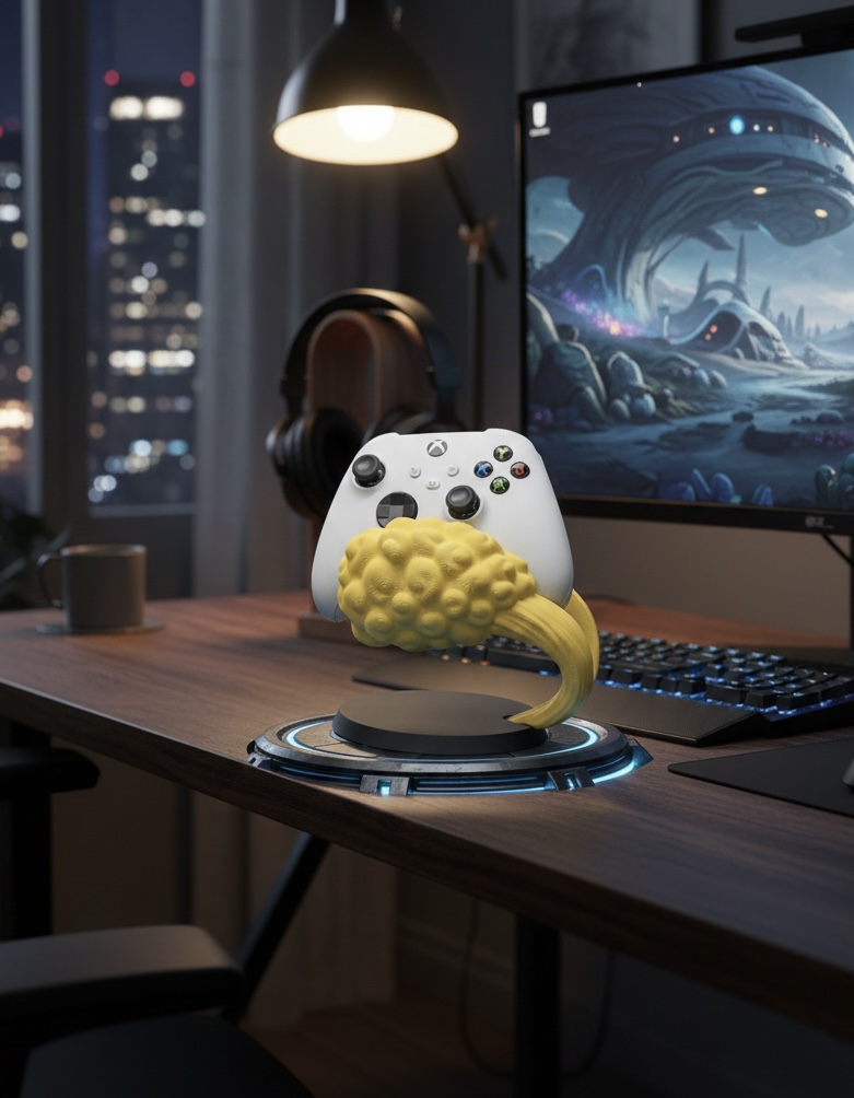 Suporte decorativo inspirado na Nuvem Kinton, ideal para organizar comandos de videojogos com estabilidade e estilo. Compatível com PS4, PS5, Xbox e Switch, é perfeito para fãs de anime que valorizam setups personalizados. Impresso em PLA sustentável.