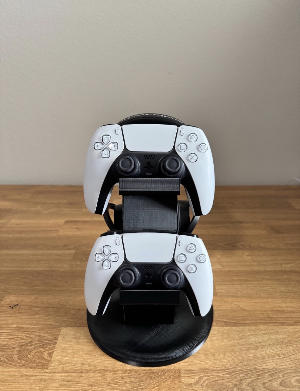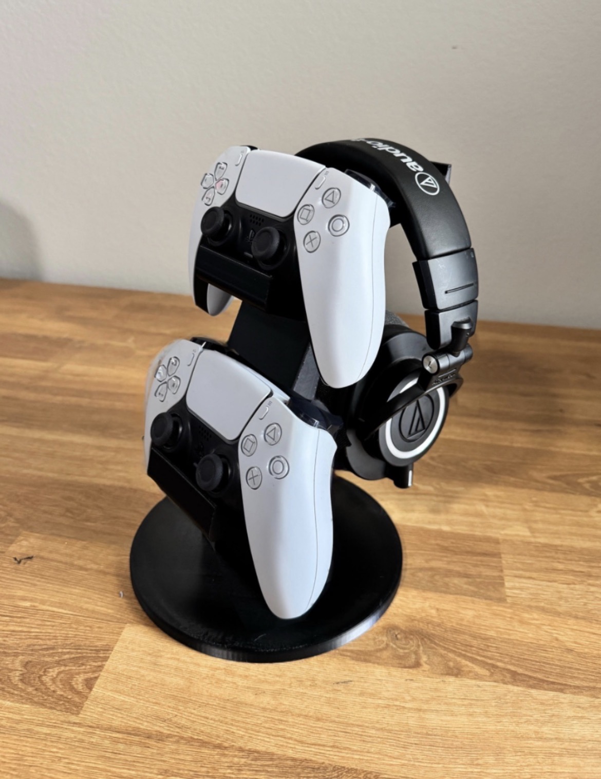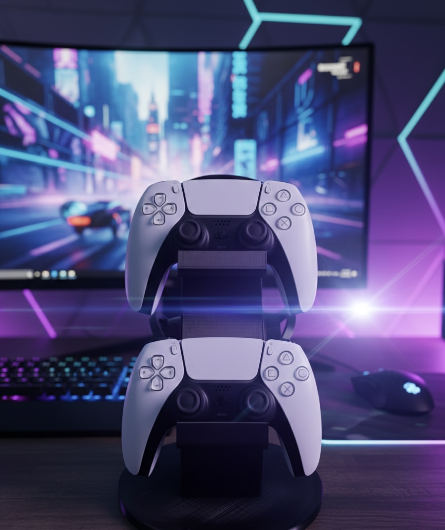 Suporte criado para jogadores de PlayStation 5 que desejam manter os comandos organizados e protegidos. Ideal para setups gamers, secretárias ou racks, evita comandos espalhados, quedas acidentais e contribui para um visual mais limpo e organizado. Impresso em PLA sustentável.